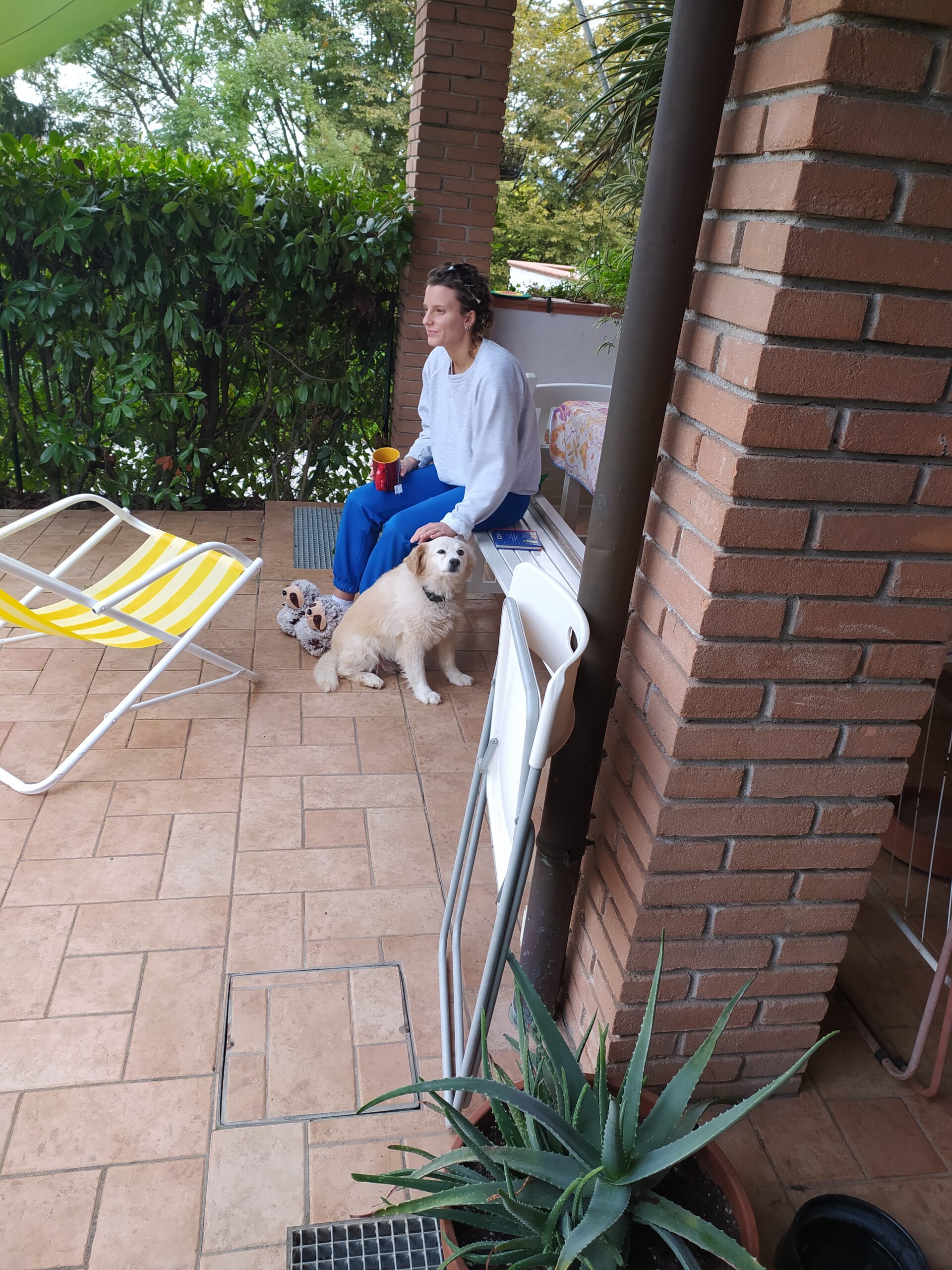 Eccola qui, Balerion e il suo fidato compagno di avventure Spritz, un maestoso cane bianco tanto carino quanto temibile.